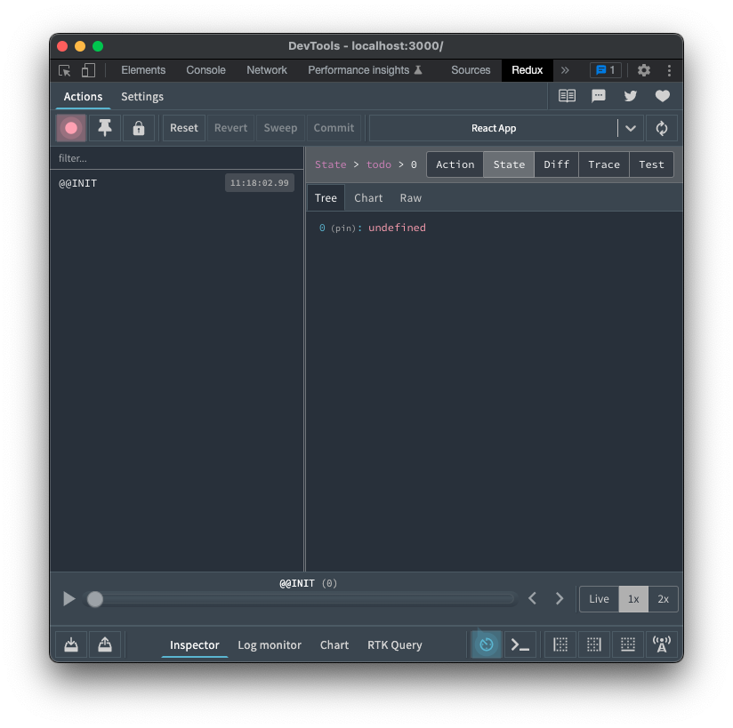 const store = createStore(rootReducer, composeEnhancers(applyMiddleware(logger)));검사창에서 실시간 로깅 확인가능